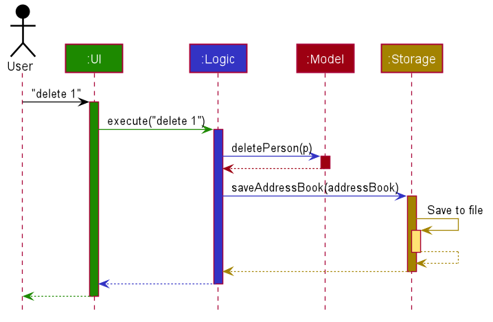 The Sequence Diagram below shows how the components interact with each other for the scenario where the user issues the command delete 1